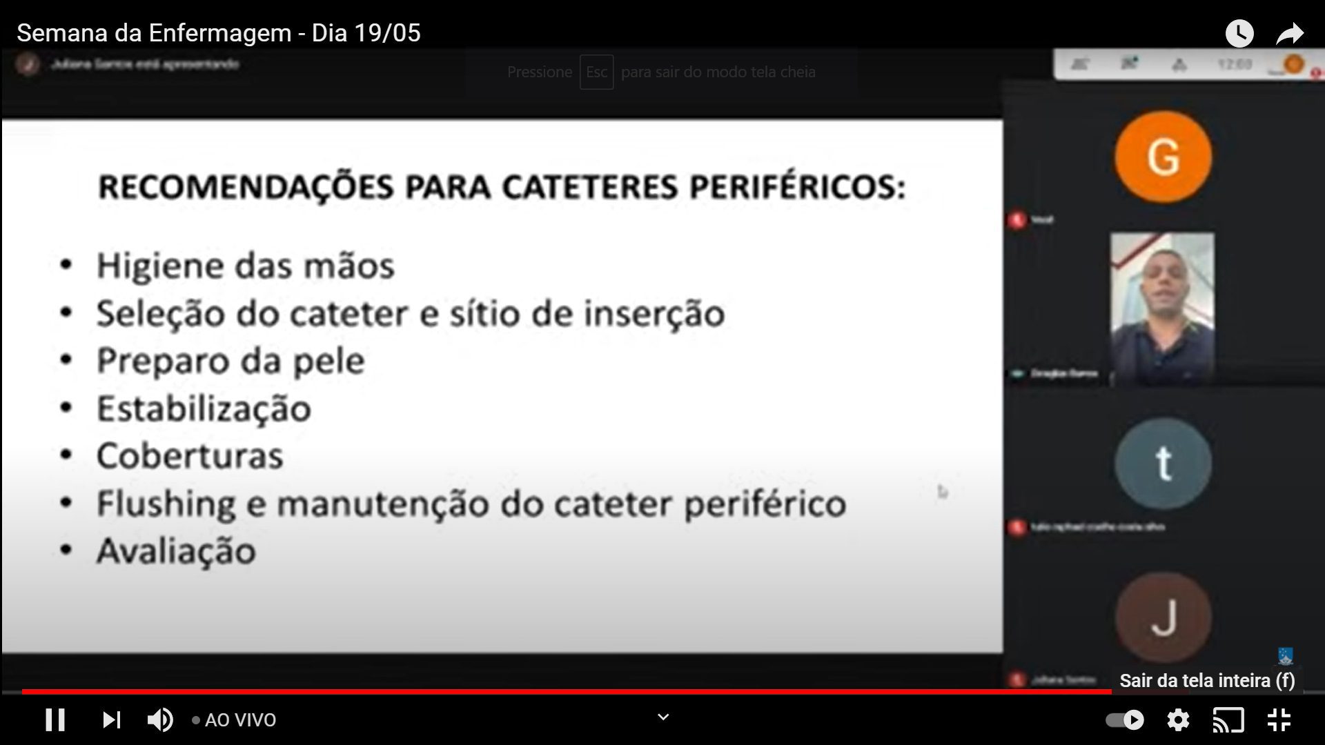 Para terminar a manhã, o Enfermeiro Douglas Henrique em sua palestra explicou sobre os dispositivos intravenosos, em relação ao manejo e como prevenir infecções pelos profissionais da enfermagem. Falou sobre a punção periférica, suas indicações e contraindicações, as dimensões e fluxo dos catéter, explicando como escolher o ideal, e as devidas recomendações para cateteres periféricos.